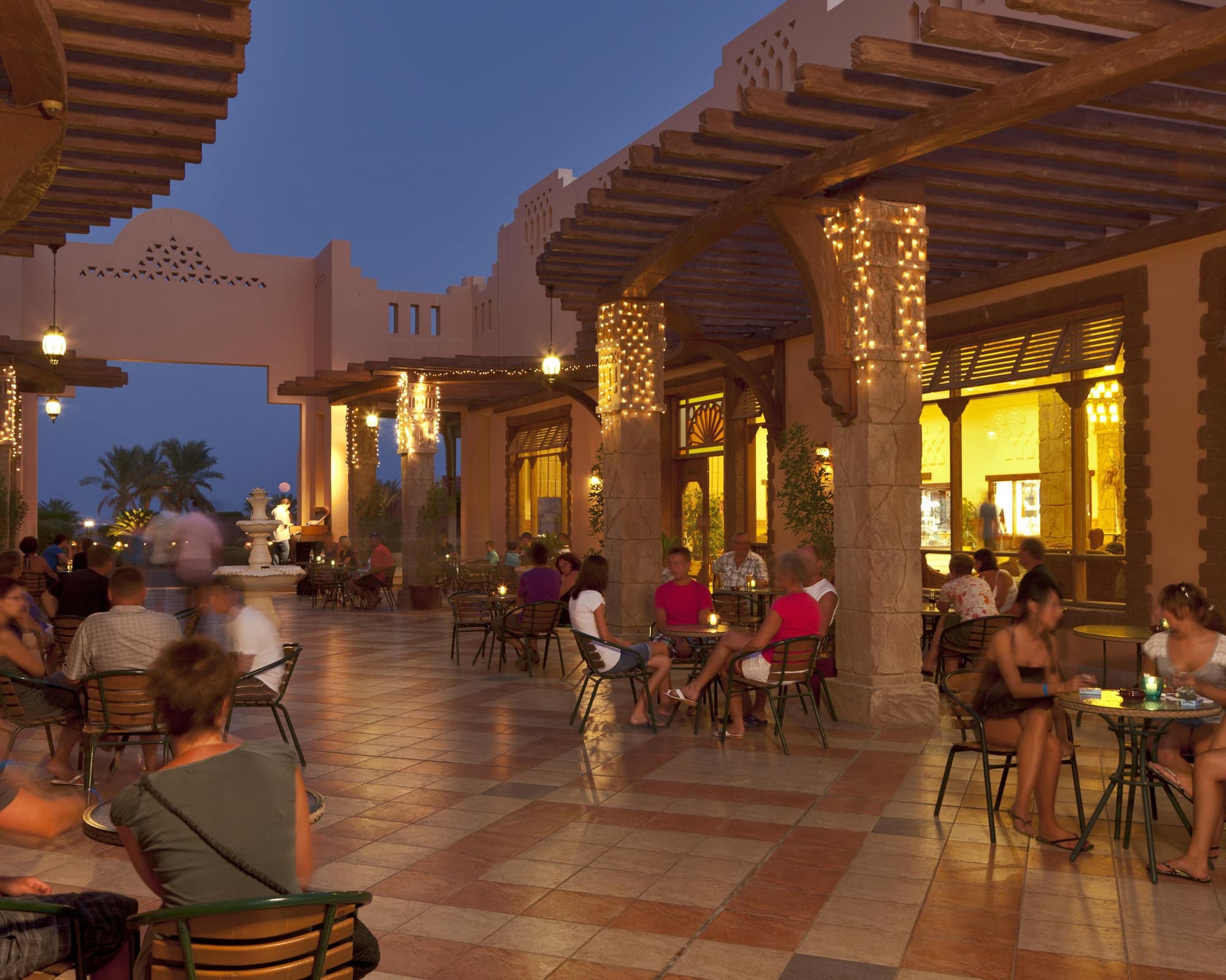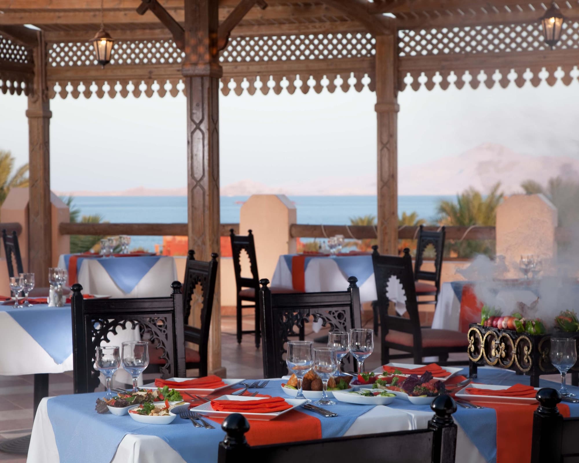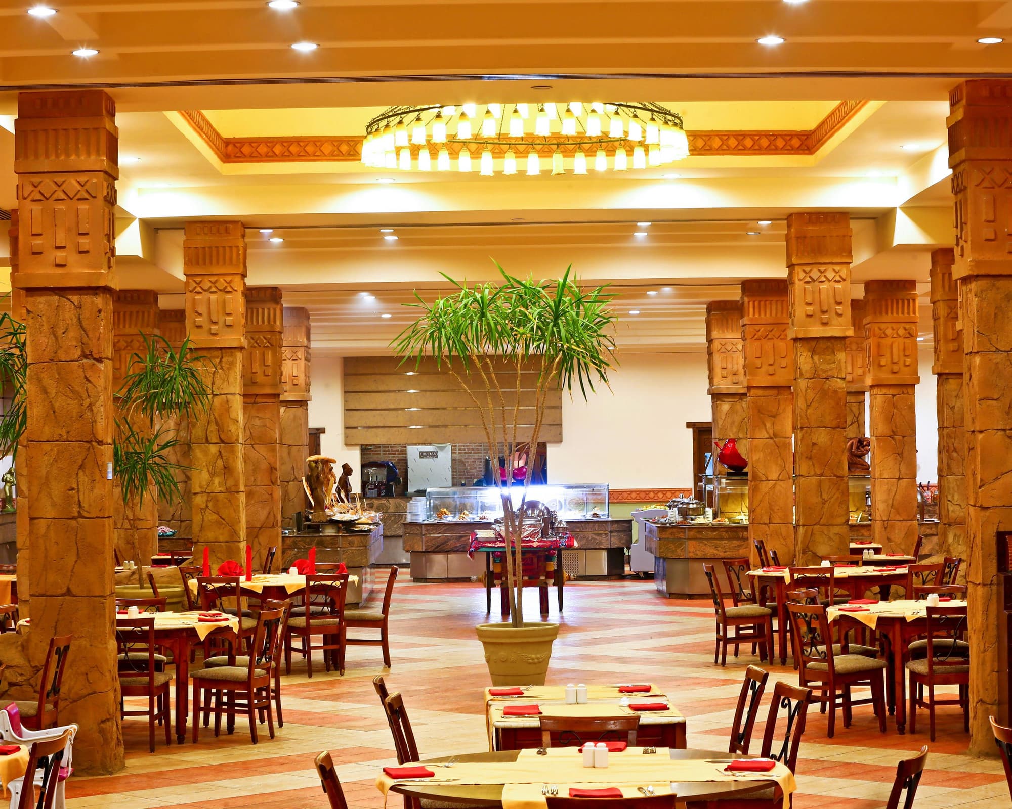 7 ristoranti, di cui uno principale a buffet in ognuno dei tre hotel (i clienti possono utilizzare solo il ristorante della propria sezione) e, a pagamento, 4 ristoranti à la carte di cui uno libanese Diwania e uno giapponese Teppanyaki nella sezione Life, uno francese e uno italiano, il Pescatore, nella sezione Club. 12 bar di cui un lobby bar in ciascun hotel, uno nella piscina principale di ogni hotel, due in spiaggia, il Barracuda Bar, e a pagamento, una tenda beduina con shisha bar, un bar presso la discoteca nella sezione Club e un disco-pub nella sezione Life.